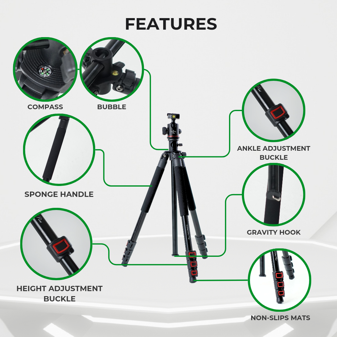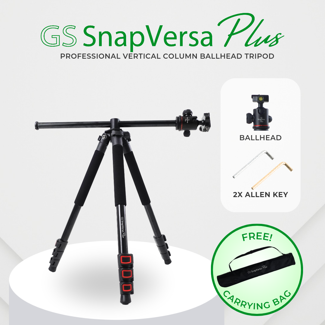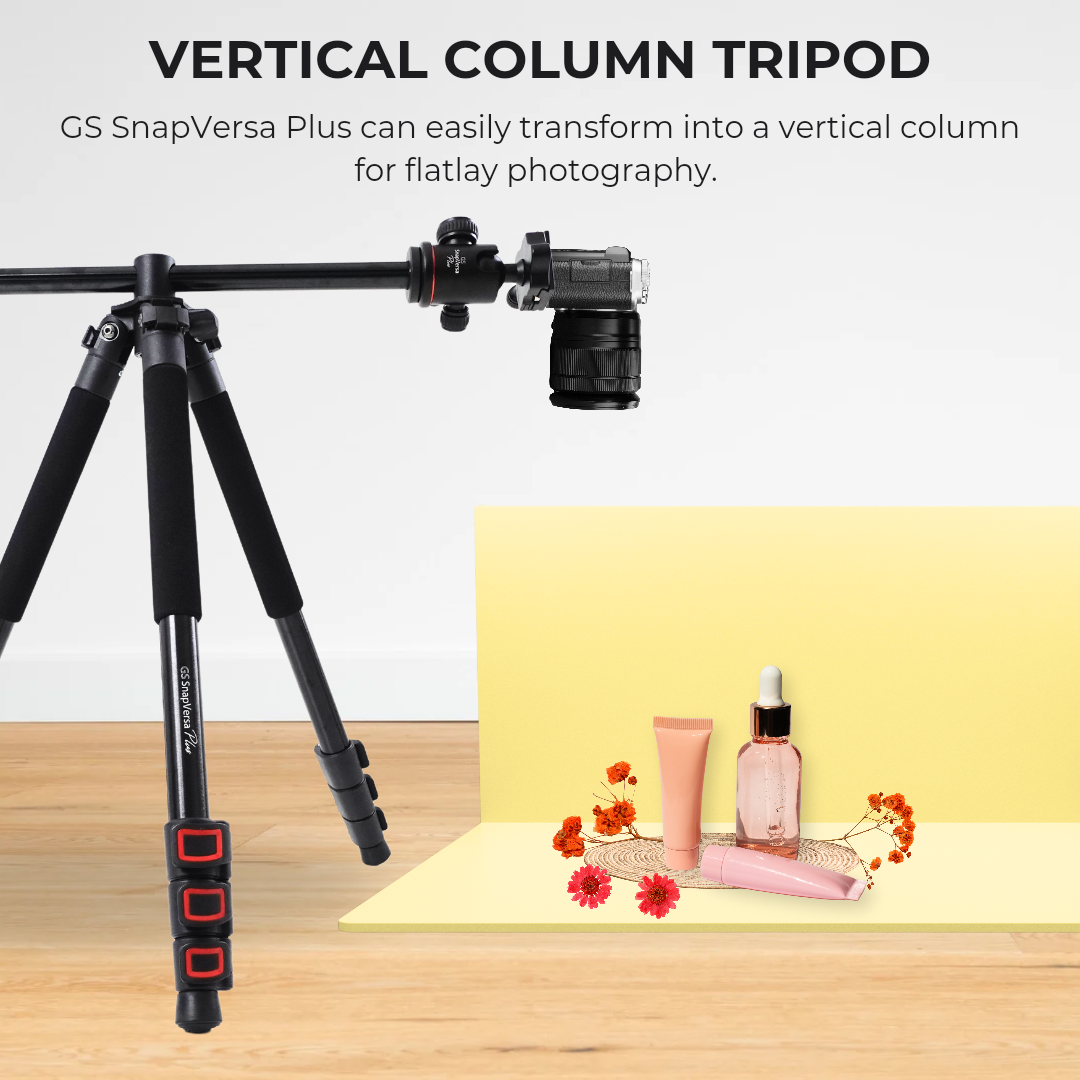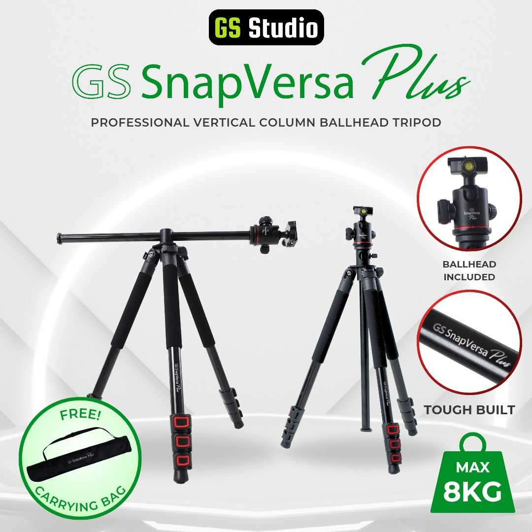 Introducing the GS SnapVersa Plus Professional Vertical Column Ballhead Tripod - the essential camera accessory for photography enthusiasts! Made with high-quality aluminum alloy material, this tripod is designed to provide stability and support to your camera.
