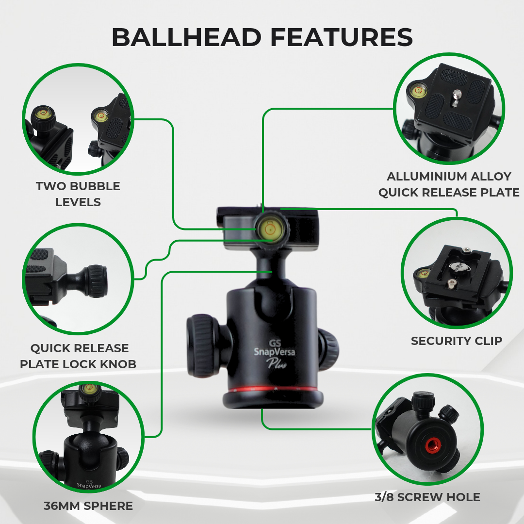 GS SnapVersa Plus Professional Vertical Column Ballhead Tripod Camera Accessories