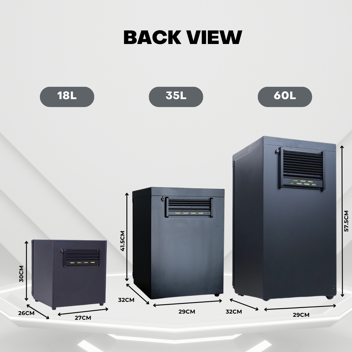 - Advanced Dehumidification Technology: The GS DryBox 35L/60L uses advanced dehumidifier technology to ensure a consistent low-humidity environment. This feature prevents corrosion, mold, and fungus growth, thereby protecting your items from moisture-related damage.