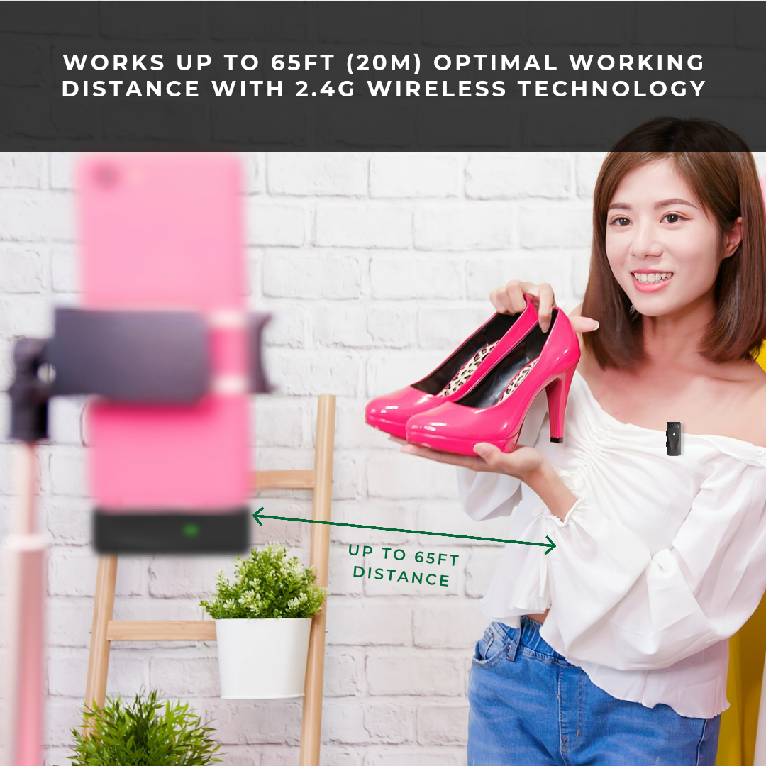 Universal Compatibility: Effortlessly connect to both Android and iPhone smartphones with our plug-and-play wireless microphone. Pairing takes just 1 second, and no additional apps are required.