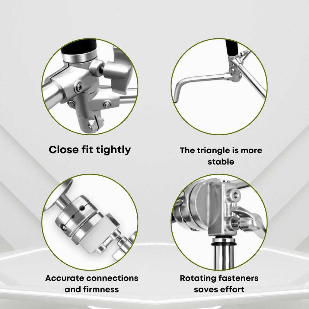 GS G-30 PREMIUM SERIES PROFESSIONAL STAINLESS STEEL HEAVY DUTY C-STAND 330CM WITH ARM AND 2 GRIPS FOR PHOTOGRAPHY VIDEOG