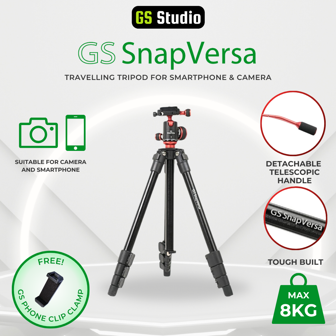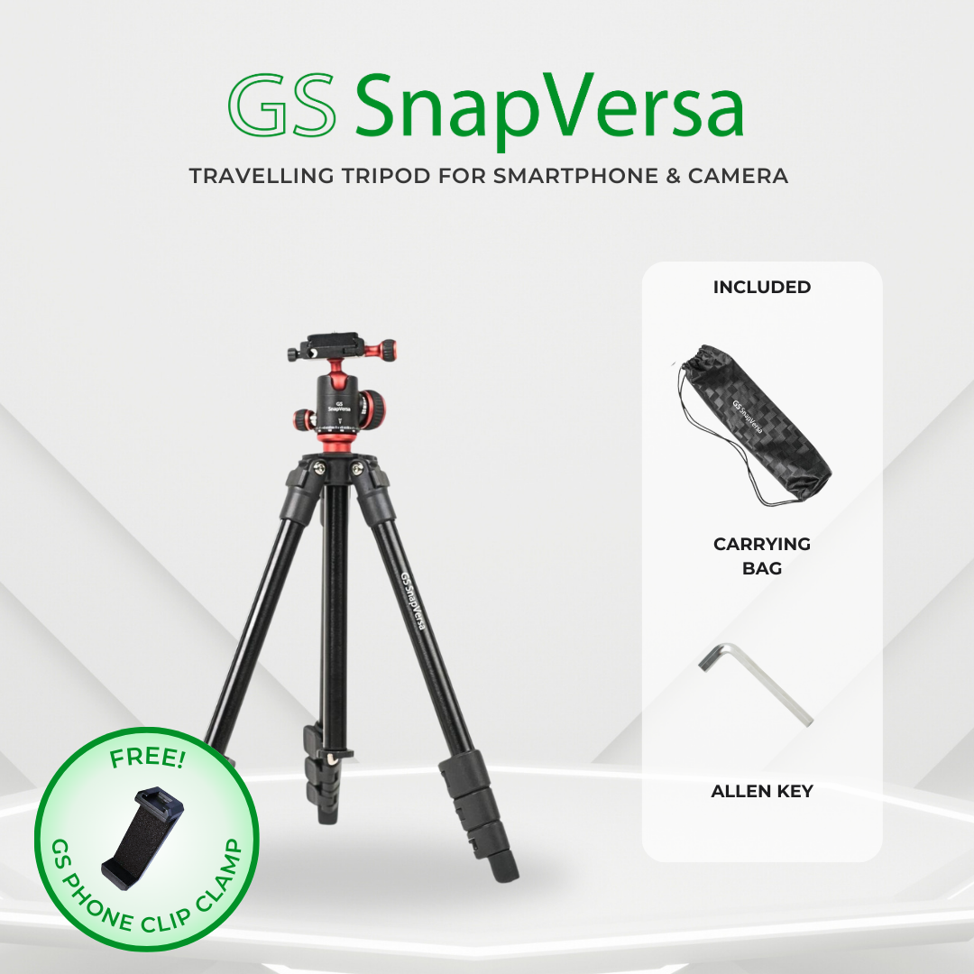 Capture the perfect shot with ease using the GS SnapVersa compact tripod. This lightweight and compact tripod is designed for both smartphones and cameras, making it the perfect companion for photography and videography on-the-go. Say goodbye to shaky footage and blurry photos, and hello to professional-quality content with this travelling focused compact tripod.