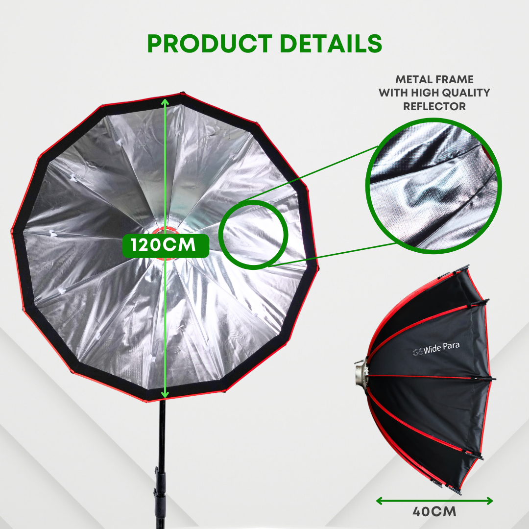 GS Wide Para Parabolic Softbox 120CM Softbox with Grid Bowens Mount Studio Photography Videography Light Modifier