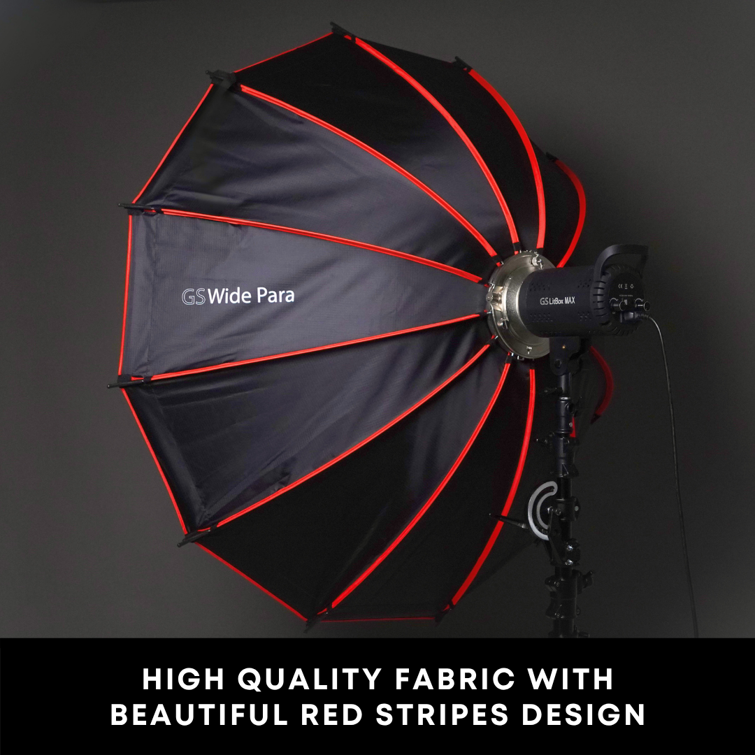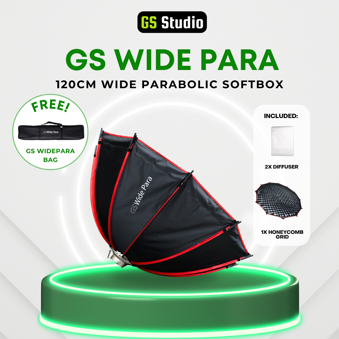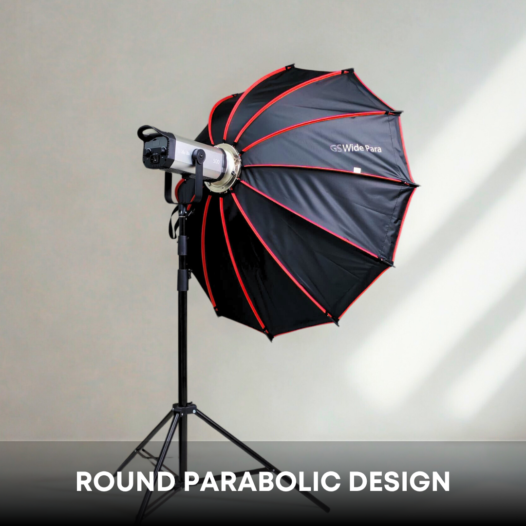 The GS Wide Para is a 120CM round parabolic softbox designed for creators who need wide, even light with quick and easy setup. Its broad coverage and round design produce soft, natural-looking results—perfect for tabletop unboxing, reviews, and studio shoots.