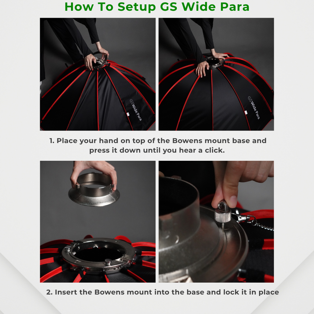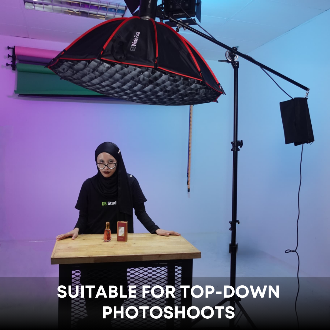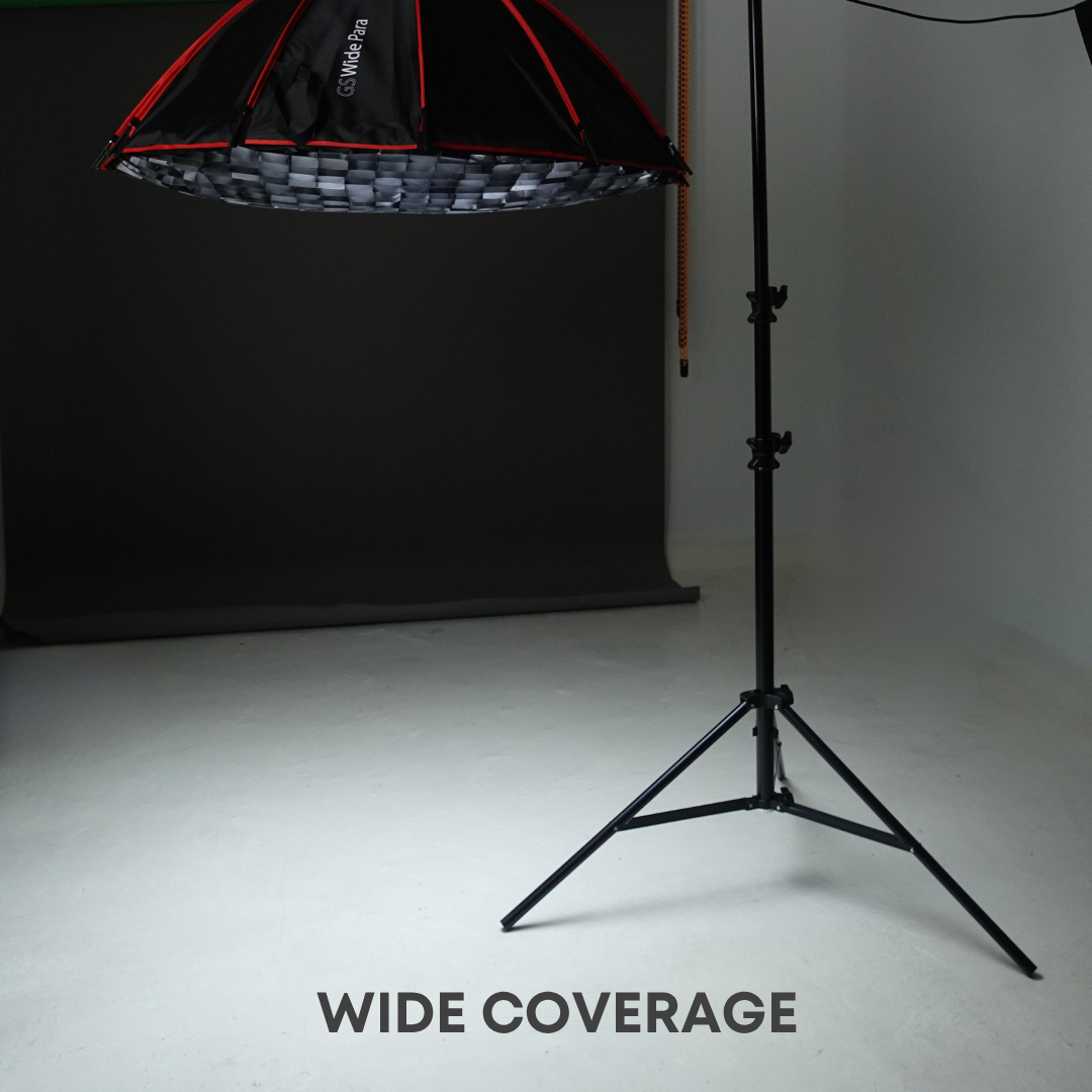 The GS Wide Para is a 120CM round parabolic softbox designed for creators who need wide, even light with quick and easy setup. Its broad coverage and round design produce soft, natural-looking results—perfect for tabletop unboxing, reviews, and studio shoots.