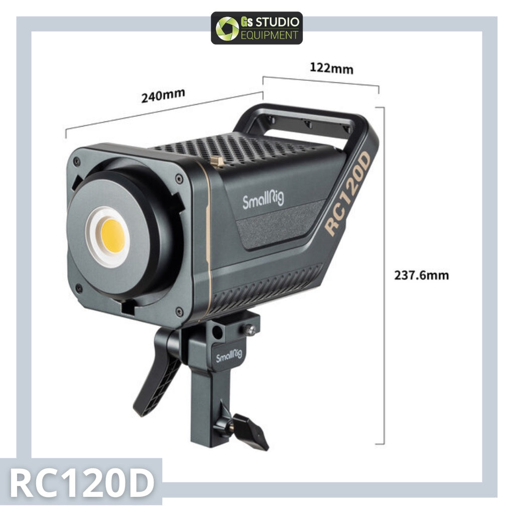 RC 120D, the first generation point-source LED light of SmallRig. With the latest COB technology and SmallRig's industrial design excellence, the RC120D is unique. With the included high-reflectance hyper reflector, at a distance of 1 meter (3.3 ft.), the center illuminance reaches 62,600 lux, Far beyond the same level of products on the market. High color fidelity, CRI 95+, TLCI 96+. Standard Bowens mount allows it to compatible with more light-control accessories. 9 built-in light effects āPaparazzi, Firework, Lightning, Fault Bulb, TV, Breath, Flash, Party, Flameāand brightness can be remotely controlled by SmallGoGo.
