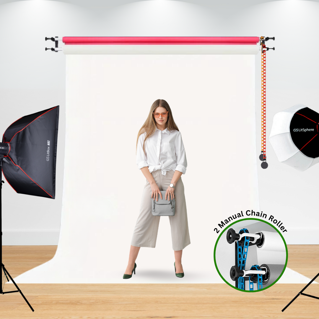 This Wall Mounted Backdrop Kit with Colors Paper Backdrop Starter Kit suitable for live streaming purposes, photography and also making content. You may choose green color to make it as green screen from this Wall Mounted Backdrop Kit with Colors Paper Backdrop Starter Kit